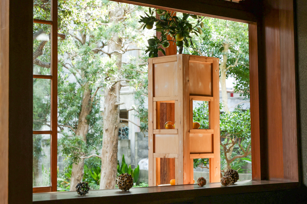 そのほか、「菌と共生 / 菌根ネットワーク」をテーマにしたSOUZOU(旧岩橋邸)では、《ビーンズ・コスモス》や《フルーツの塔》を展示し、「土と根 / 見えない根を探る」をテーマにした愛和荘では、写真作品《クマノ・ラディーチ》と複雑な根の構造を使った作品《無題》が展示されました。
