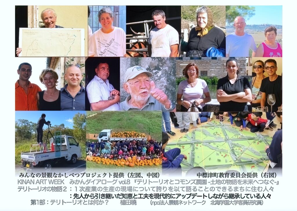 本座談会は、2025年6月のオンライントーク〈みかんダイアローグ vol.8〉で、建築家・植田曉氏から紹介されたイタリアの「テリトーリオ」という概念と、その具体的実践を受けて開催された。その問題意識を引き継ぎながら、テリトーリオの視点をコモンズ農園の理念に重ね合わせ、田辺という地域を軸にしたツアーと座談会を通して、その在り方とプロセスを共有した。
