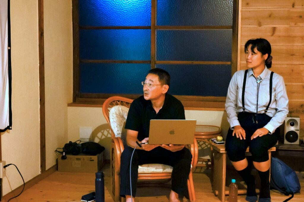 続いて、岩佐と問山が、田辺に外から戻ってきた者、あるいは外から移り住んだ者としての実感を語った。問山は、未舗装の道に広がる梅畑や秋津野ガルテンの風景に農村らしさを見いだし、地域には趣味のグループやガルテンを軸とした緩やかなつながりがあると述べた。岩佐は、川沿いでカワセミに出会う散歩道や、近所同士の野菜のやり取りを挙げ、日常のなかに人と自然の近さがあると語った。また、草刈り、野焼き、溝掃除といった共同作業が、かつての厳しい共同体の名残をとどめながら、いまも景観を支えていることが確認された。一方で、みかん畑が梅へ転換されていることや、護岸工事、宅地造成など、風景が静かに変わりつつある現実も共有された。