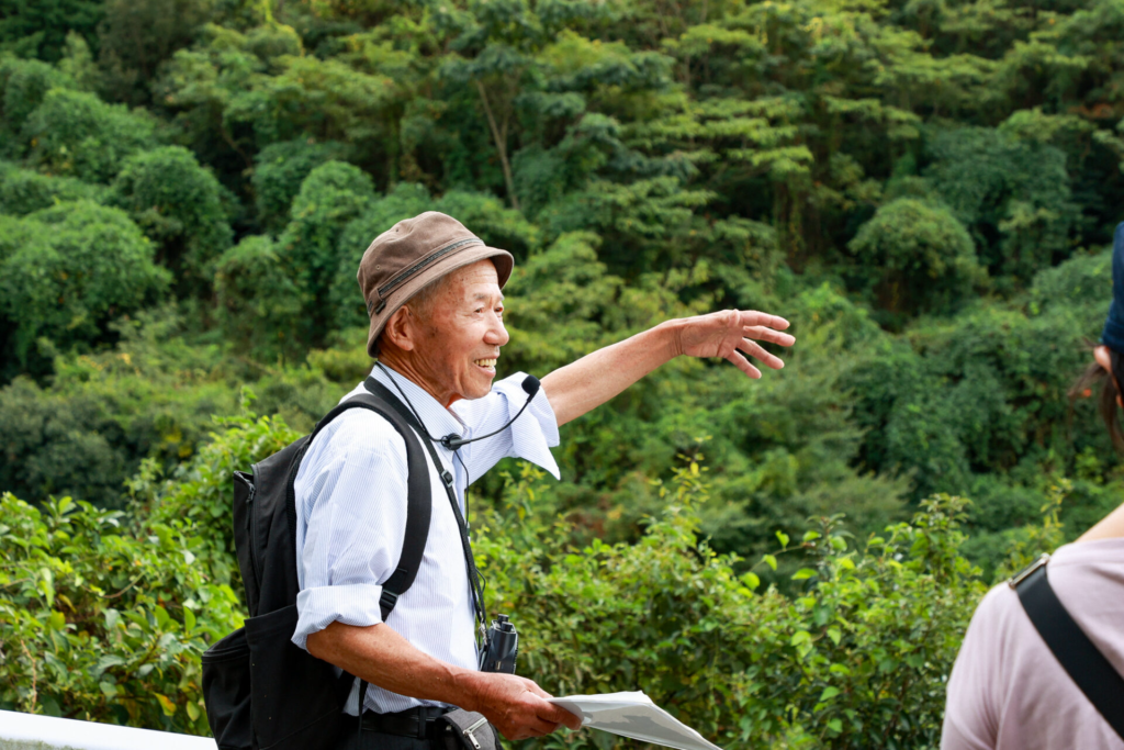 地元の上秋津で長年地域づくりに携わってこられた原和男さんをゲストに、地域の歴史、農業、水利、伝説などを巡るツアーを2025年10月18日におこないました。