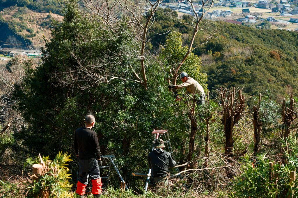 そうこうしているうちに、とうとう2025年に上秋津野で農薬を使わず柑橘を育ててきた女性から農地を提供いただくことになりました。農地の歴史については、「リサーチ」にオーナーのご家族から聞いた話が記されています。実際に農業の活動を開始するにあたり、周辺地域の歴史を詳しく知るために柑橘農家でもあり郷土史に通じた原和男さんにご案内いただいたフィールドワーク[上秋津フィールドワーク]と、「テリトーリオ」と「文化的景観」という概念を通して歴史的に形作られてきた風景の見方について植田暁さんから説明していただくレクチャー[地域を織る―座談会『田辺の文化的景観』]を実施しました。